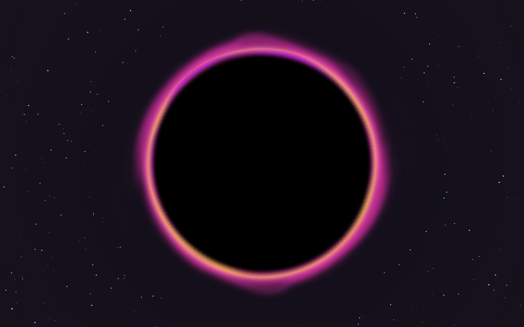 A mysterious animated black hole appeared in End's sky, surrounded by neon lights.