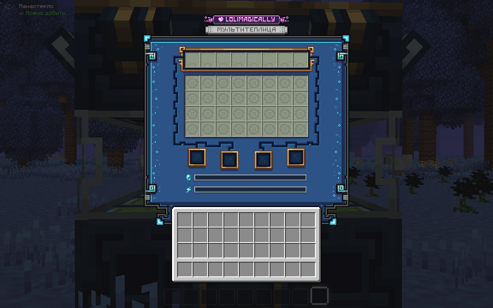 No more need to remember the number of improvements, their setup and the setup of the mechanism itself, just copy them all and apply them to any other Metal Forming Mechanism. The duplicator itself will find all the necessary improvements from your inventory, backpacks or even ME cells, customize them if necessary and place them in the mechanism. And the Duplicator itself will return all unnecessary improvements from the mechanism to your inventory!